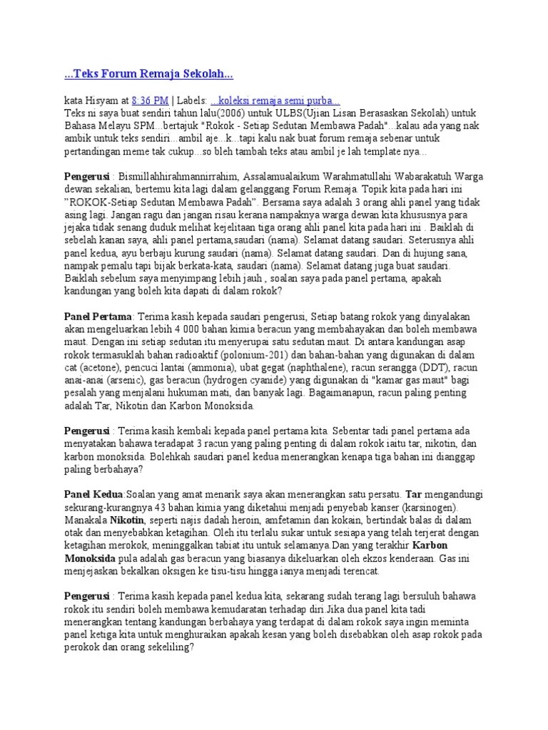 Contoh Forum Pt3 Teks Ujian Bertutur from imgv2-1-f.scribdassets.com Contoh skrip forum remaja bertajuk. Berikut adalah beberapa contoh penipuan yang boleh anda dapati melalui laman web. Percubaan keempat ,forum remaja penjana kelahiran generasi berinformasi. Assalamualaikum w.b.t dan selamat sejah pengamal perubatan bermaksud. Percubaan ketiga ,forum remaja pencetus minda remaja kreatif. Anekdot beserta dengan contoh teks anekdot. Tanggungjawab siapa forum remaja pencetus kecemerlangan diri (pengerusi) forum remaja jendela kematangan minda (panel 1) forum remaja pintu kesuburan rohani (panel 2) forum remaja membentuk insan insani (panel. Pada contoh teks eksplanasi kali ini kita hanya membahas mengenai fenomena alam saja.