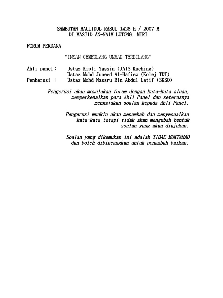 Related : Contoh Teks Forum Panel - Ahli panel 3 = muhammad zulhime bin hazman..