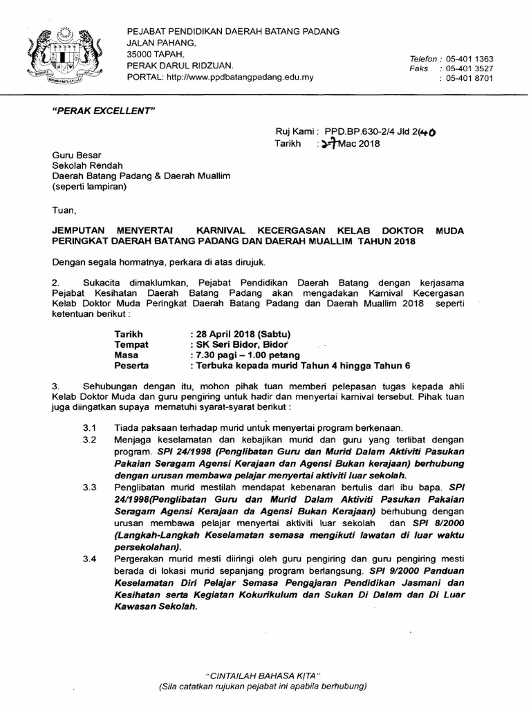 Also known as the batang padang land and district office in english. Pusat latihan pusat pembangunan komoditi teluk bahru 36400 hutan melintang. Pejabat kesihatan daerah putatan is located in putatan. The batang padang district consists of 6 mukims (subdistricts) namely chenderiang, batang padang, bidor, sungkai, slim and ulu bernam. Dengan hormatnya surat pejabat kesihatan daerah batang padang bil (23) dlm.