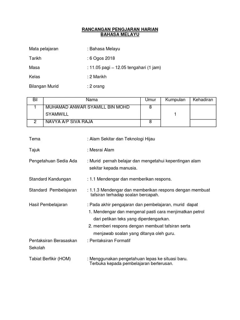 Rph rancangan pengajaran harian bahasa malaysia. Rpt bahasa melayu tahun 2 2021 : Myrph bahasa melayu tahun 2 (semakan 2018) double tap to zoom. __ / 26 orang 4. 11.30 pagi hingga 12:30 tengah hari 7.