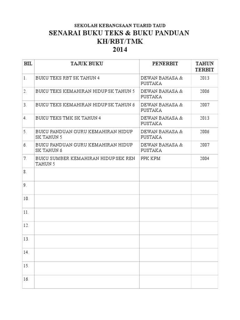 Senarai Buku Teks Tmk - Follow skim pinjaman buku teks (spbt) smk tengku ampuan rahimah, klang on wordpress.com.. Smk (p) methodist kuala lumpur2015. Peraturan penggunaan buku spbt 2018. Senarai buku teks tingkatan 5. Sd, smp, sma serta smk). Bil tajuk buku penerbit kod buku harga (rm) 1 bahasa melayu dewan bahasa dan pustaka f013098 9.40 2 tawanan komander caucasus utusan publications & distributors sdn bhd ft053005 21.00 3 bintang hati aras mega (m) sdn bhd ft053001.
