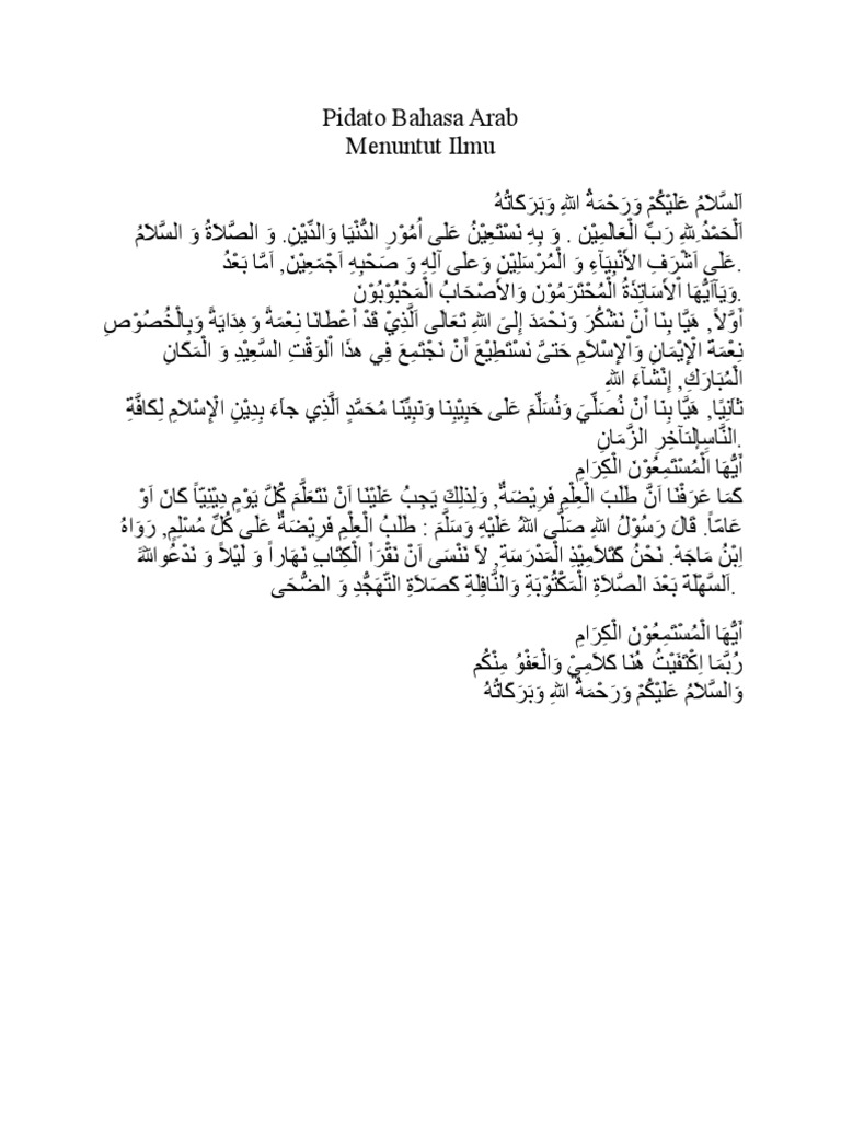 Pidato bahasa arab ringkas bagi pemula. Keanekaragaman bangsa ini adalah rahmat allah swt telah. Demikianlah contoh pidato bahasa arab tentang menuntut ilmu yang dapat saya bagikan pada artikel kali ini, terima kasih atas kunjungan. Teks pidato bahasa jawa tentang pendidikan, lingkungan, kesehatan, kemerdekaan, pernikahan, khitanan. Teks pidato bahasa arab by fuad zain 55228 views.